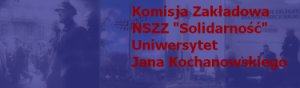 Opis: Nagłówek serwisu NSZZ „Solidarność” w UJK Kielce (bez logo związku).